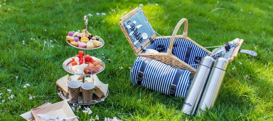Kom heerlijk genieten van een picknick of high tea op het mooie landgoed, met een goed gevulde mand.